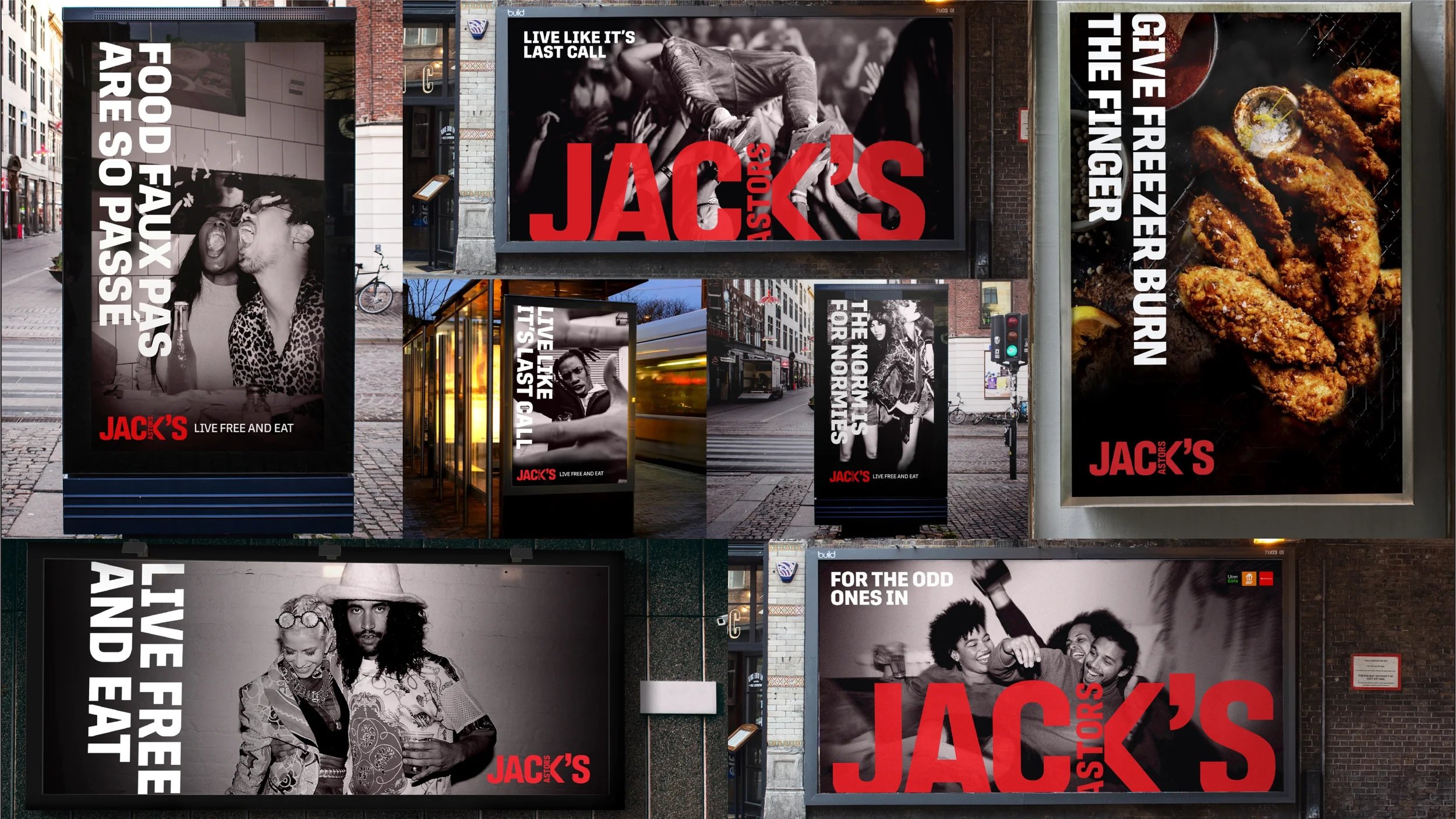Craft a playful, rebellious identity that links every touchpoint, from menus to signage to digital surfaces. Build a cohesive system that feels energetic, authentic and unmistakably Jack’s.